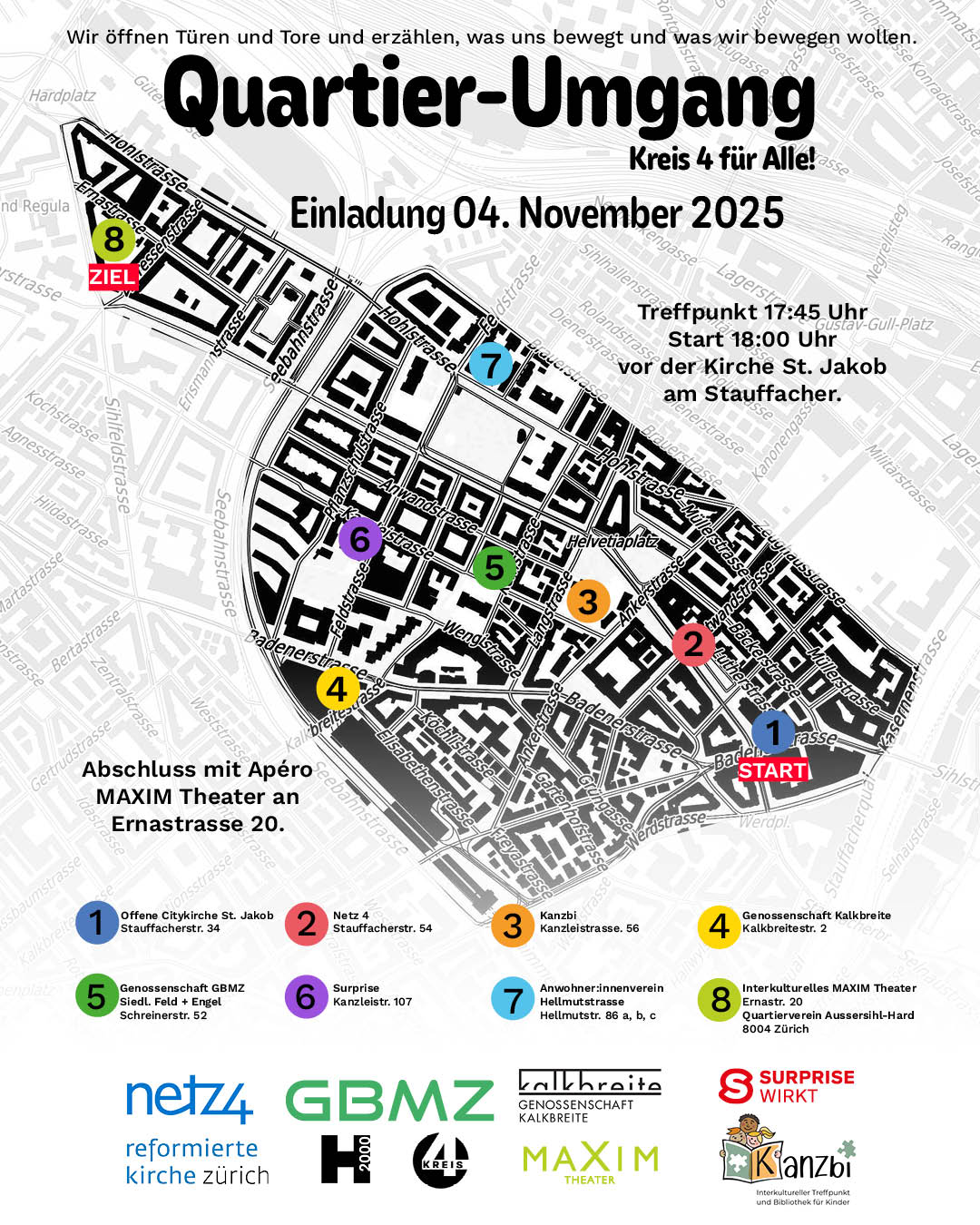 Das Netz4 befindet sich im Herzen von Zürich. Nur 10 Minuten vom Hauptbahnhof, sind wir zwischen Stauffacher und Helvetiaplatz in den Räumen der evangelisch-methodistischen Kirche Zuhause.